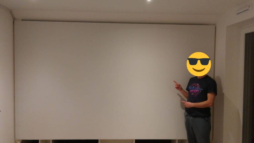 Ich muss sagen, dass der Rahmen unheimlich viel ausmacht und es ein ganz anderes Gefühl ist, als wenn man auf eine komplett weiße Wand guckt. So wird aus der Wand wirklich eine Kinoleinwand. Und dabei stehen Aufwand und Kosten (ca. 25 €) in einem super Verhältnis zum Ergebnis.