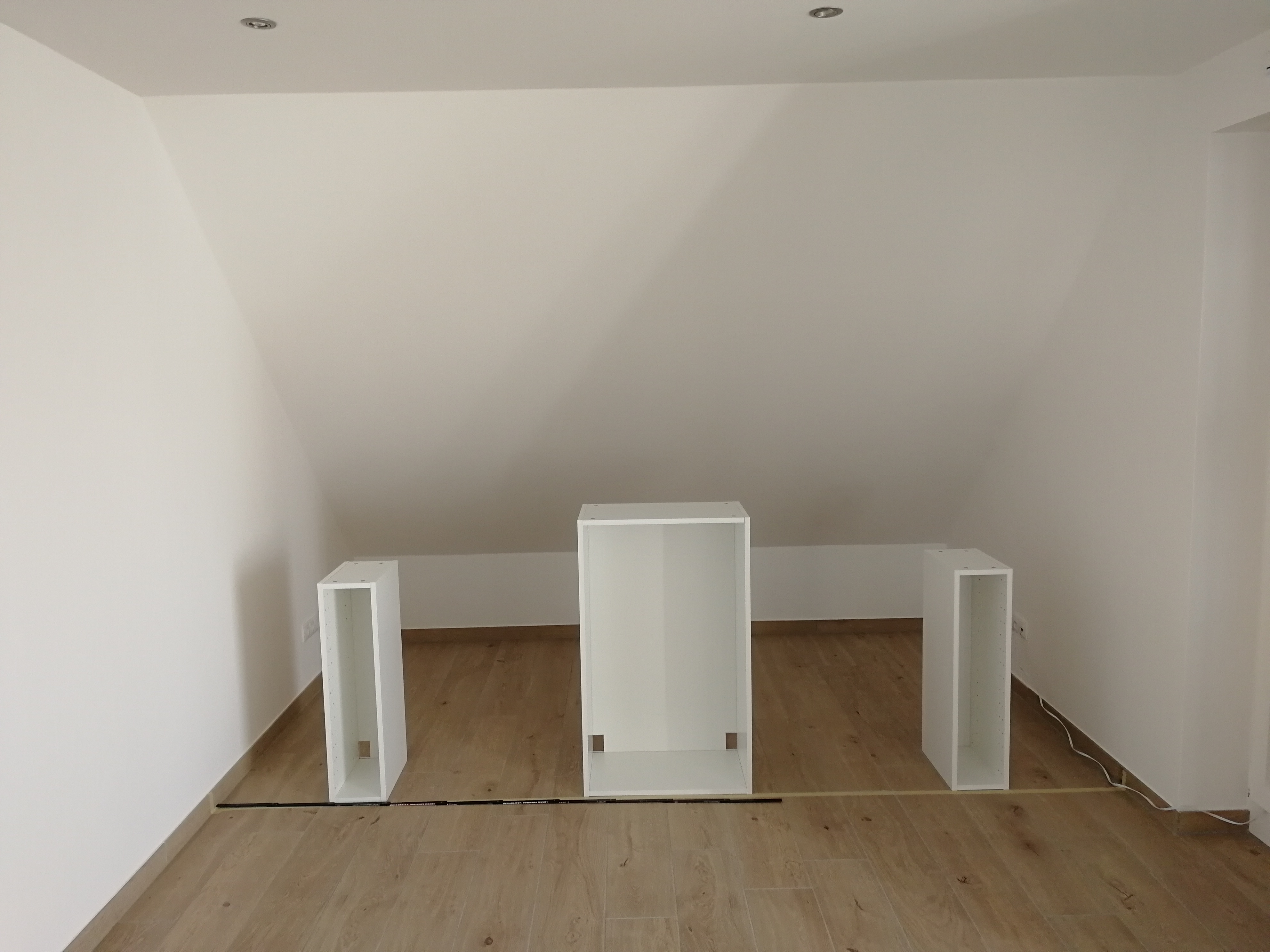 Nachdem die Jungs vom Heimkinoraum mir alle Sachen vorbei gebracht haben, war ich erstmal ein wenig überfordert und hab die Kartons erstmal alle unangetastet stehen gelassen. Stattdessen hab ich die noch fehleden IKEA Regale aufgebaut. Ein Besta als Zuhause für Playstation 4 (bald 5), den Receiver, sowie den rechten rear speaker, sowie drei Metod Küchen-Oberschränke als Unterkonstruktion für meine Frontlautsprecher.