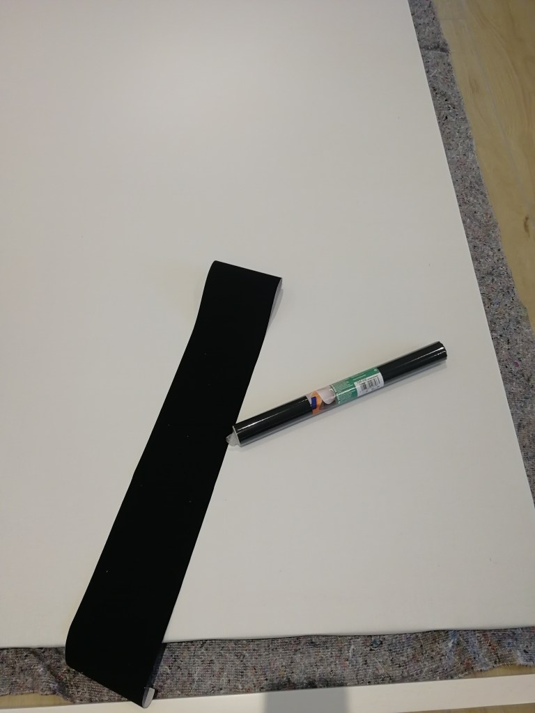 Nachdem ich jetzt schon ein paar Sachen auf der Leinwand geschaut bzw gespielt habe, bin ich doch sehr zufrieden mit dem, wie es bis jetzt gelaufen ist. Jetzt geht es noch darum, Bild und Ton das letzte bisschen raus zu kitzeln. Bei komplett weißen Wänden und Decke, ist der erste Schritte in meiner Planung; im Bereich von mindestens einem Meter rund um die Leinwand alles (Wände, Decke, ggf. Boden) schwarz machen. Angefangen wird mit dem Rahmen für das eigentlich dargestellte Bild. Da ich einen Schattenwurf vermeiden wollte, kam ich schnell auf die Idee eine Folie direkt auf die Leinwand zu kleben. Habe mich für schwarze, selbstklebend Fliesfolie entschieden, da sie einfach zu befestigen ist und viel Licht schluckt.